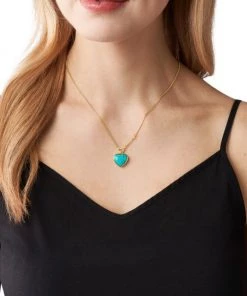 Michael Kors Premium 14K Gold-Plated, Turquoise & Cubic Zirconia Heart Locket Necklace
