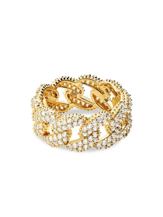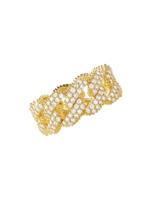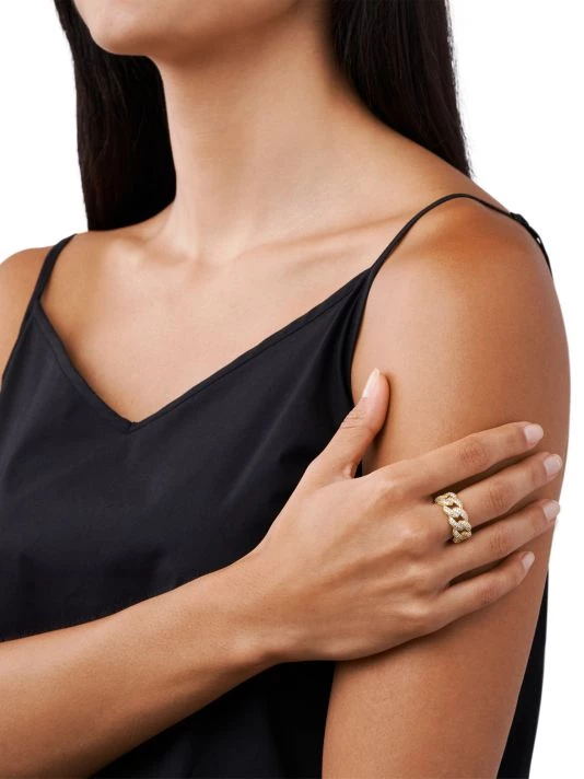 Crafted of 14K-gold-plated sterling silver, Michael Kors’ curb-chain ring shimmers with white cubic zirconia.