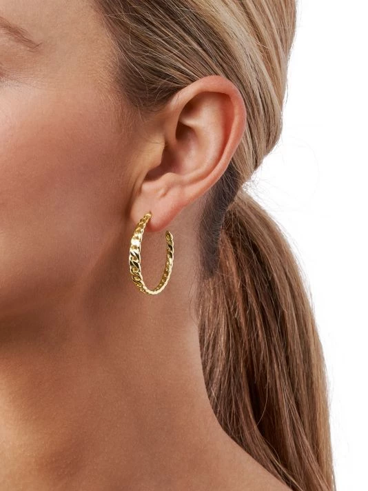 Michael Kors’ curb-chain hoop earrings are crafted of 14K-gold-plated sterling silver. Secured with a post back, this stylish pair gleams with a polished finish.