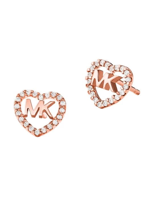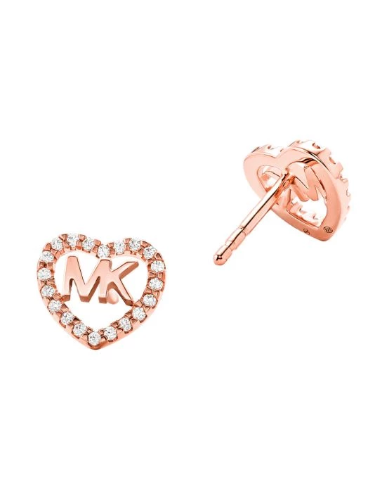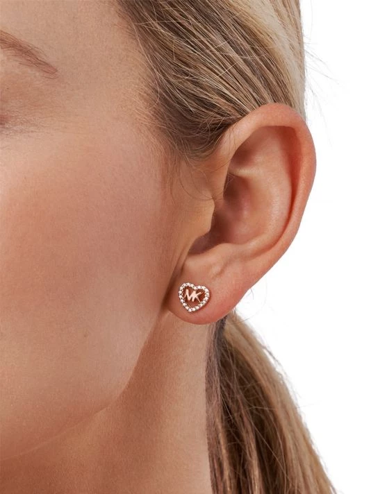 Made of 14K-rose-gold-plated sterling silver, Michael Kors’ heart monogram stud earrings are bordered by shimmering white cubic zirconia. This versatile pair adds a polished, refined touch to any look.