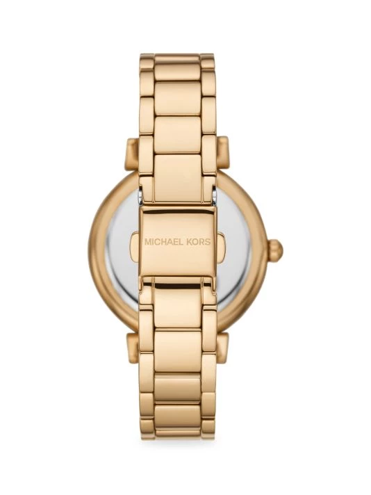 - Goldtone stainless steel case and bracelet