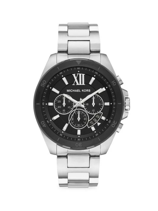 From the Brecken Collection. Combining a timeless silhouette with precision and style, the Brecken features an oversized silhouette with a tachymeter scale and chronograph mechanism for measuring time over distance. Designed in stainless steel with a bracelet strap for a signature finish.