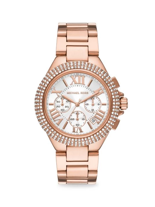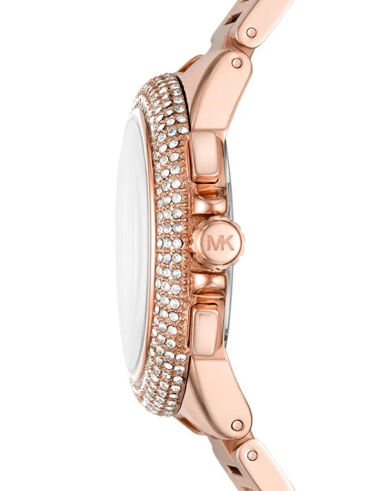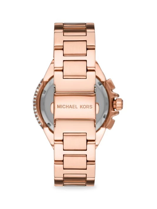 - Rose goldtone stainless steel case and bracelet