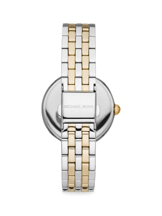 From the Diamond Darci Collection. Delivering stand-out style in a timeless, elegant design, this timepiece features a white sunray dial with 12 diamond indexes, three-hand movement and stainless steel bracelet with goldtone center links