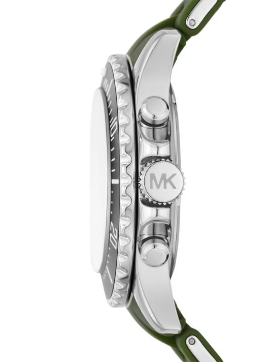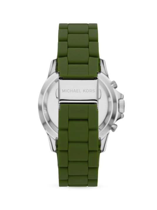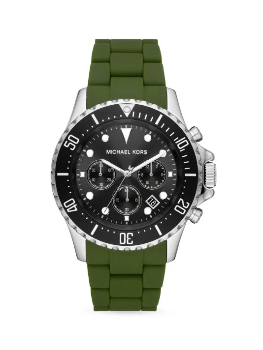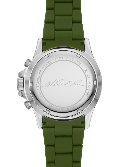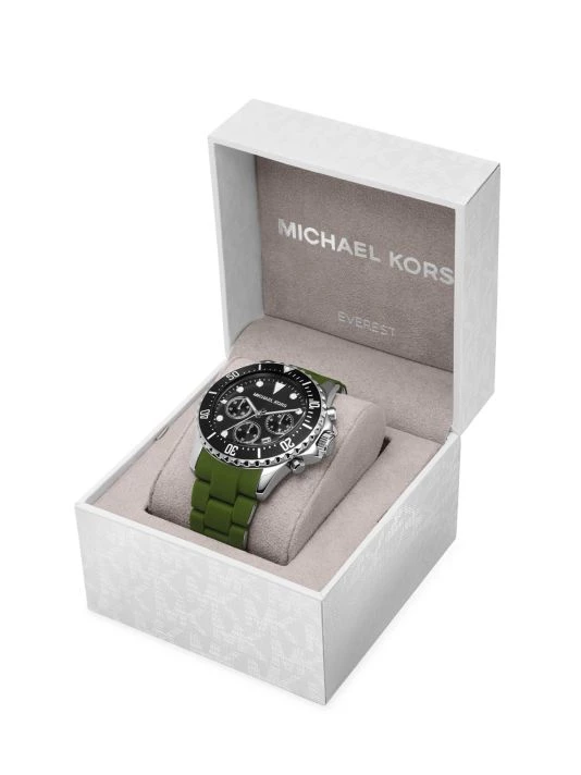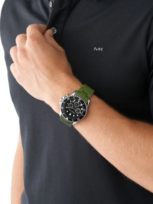 From the Everest Collection. A redesigned favorite, Michael Kors’ sophisticated men’s watch features classic styling with a silicone-wrapped bracelet for practical comfort.