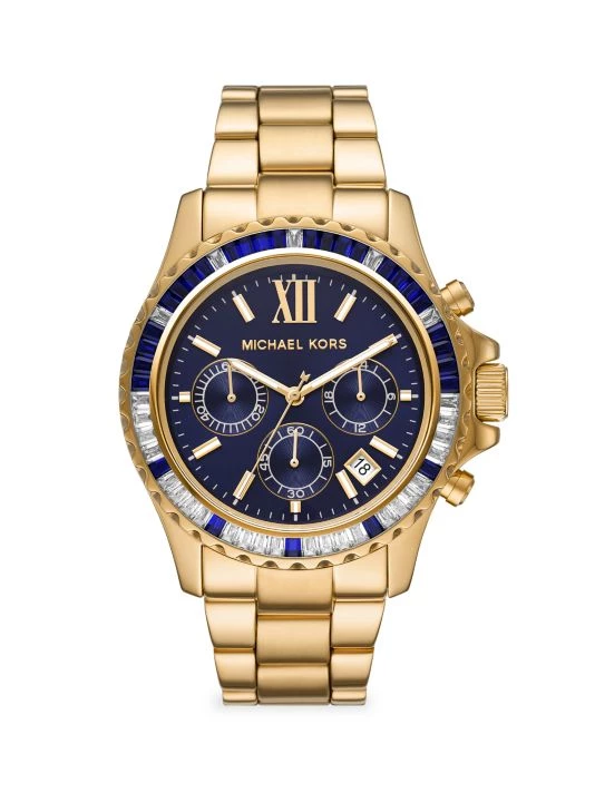 From the Everest collection.This 42mm watch features a blue sunray dial, stainless steel case, blue bezel, and stainless steel bracelet.