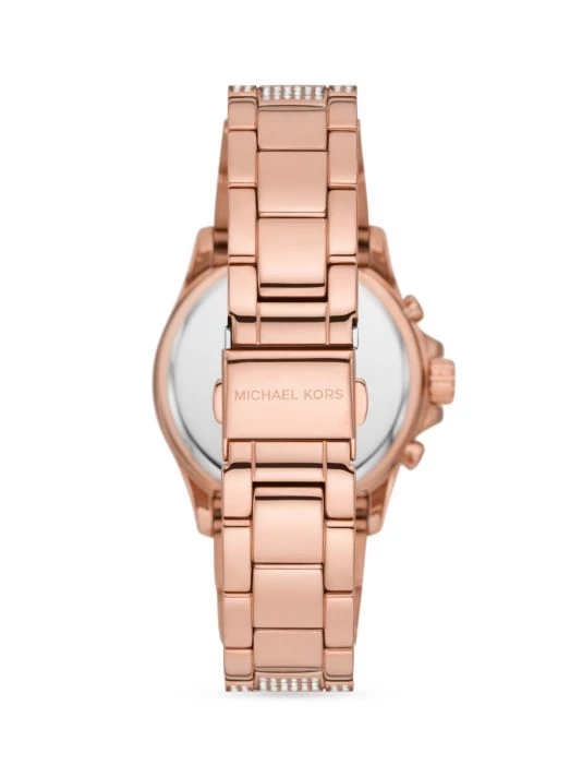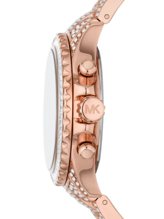 From the Everest Collection. Michael Kors’ glamorous chronograph watch features a crystal pavé embellished rose goldtone case and bracelet.