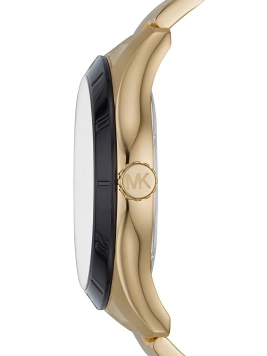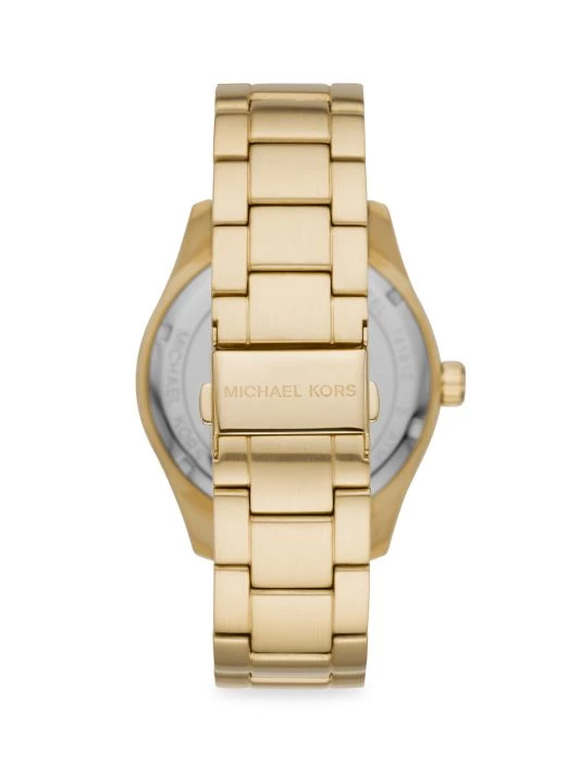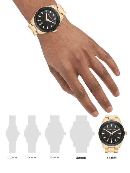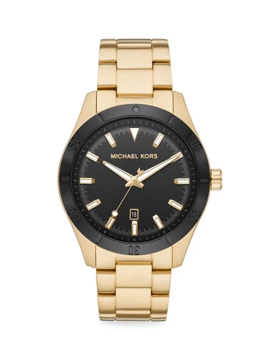 From the Layton Collection. Expertly crafted from goldtone stainless steel with a sophisticated bracelet strap, the Layton watch will ensure style and function for years to come. It boasts a black backdrop with luminous dial accents and a tachymeter bezel for measuring speed or distance.