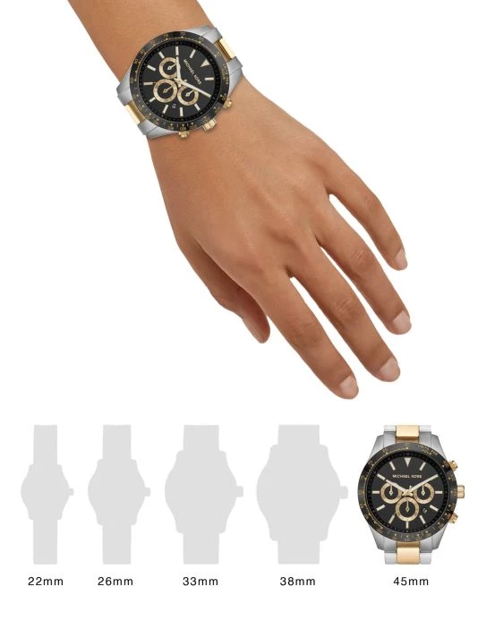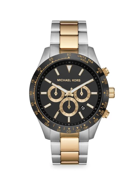 Expertly crafted from two-tone stainless steel in an oversize silhouette, the Layton boasts a tachymeter bezel for measuring speed or distance, as well as a chronograph mechanism for accurate timekeeping.