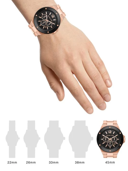 - Rose goldtone stainless steel bracelet, 24mm (1.1”)