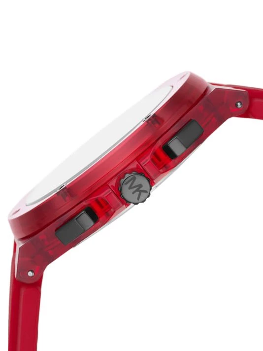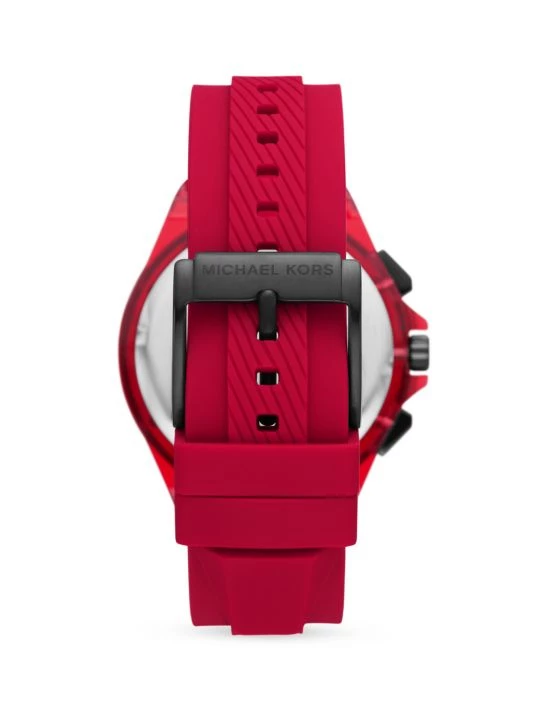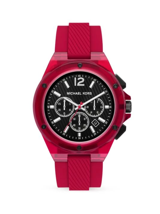 From the Lennox Collection. This sporty chronograph watch features a translucent case and black stripe dial on a silicone strap.