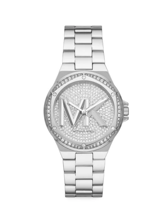 From the Lennox Collection. Designed with a pavé dial and top-ring, this stainless steel watch features a bold logo.