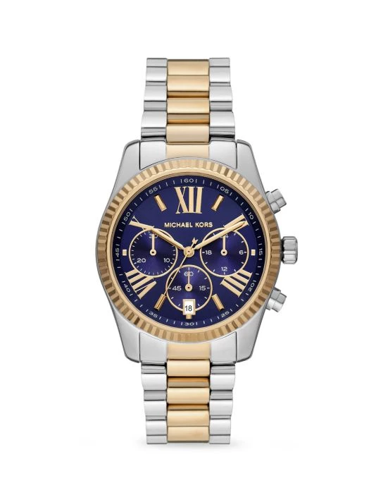 From the Lexington Collection. A deep navy blue dial defines this two-tone stainless steel watch, designed with a bold menswear-inspired silhouette.