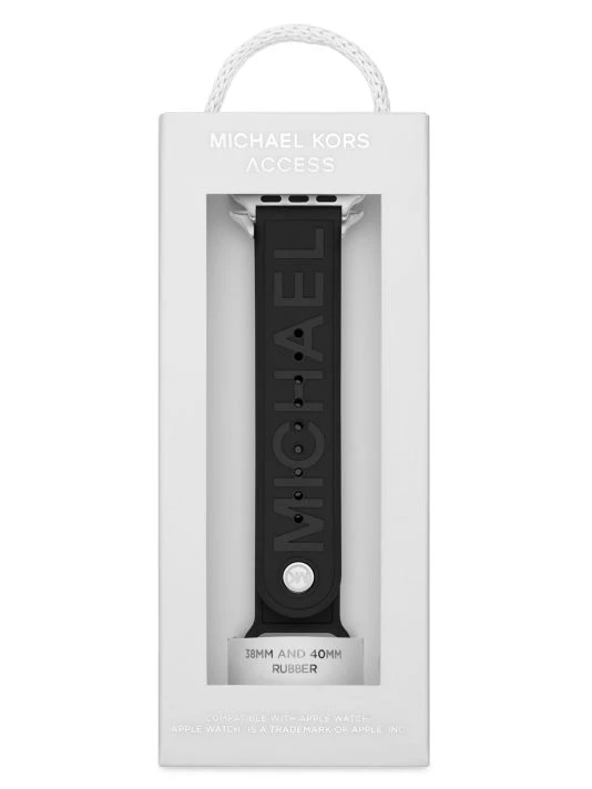 A black rubber Apple Watch® band showcasing the label’s namesake embossed.