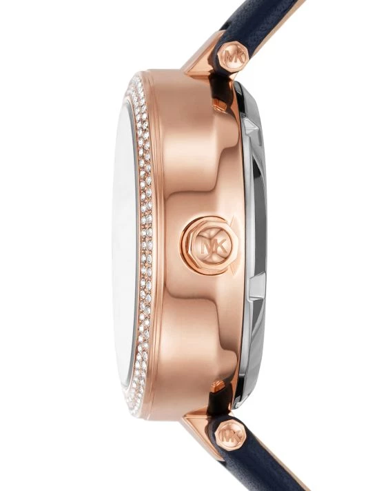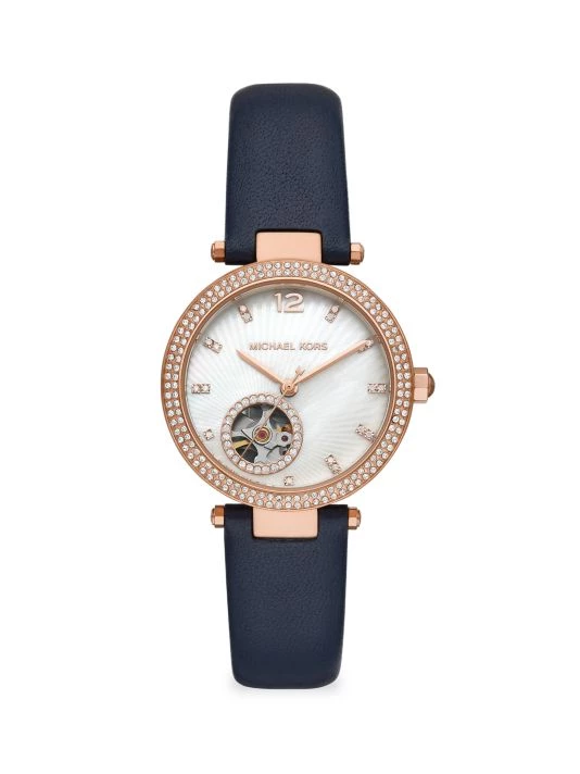 From the Parker Collection. Pavé adds sparkle to this leather-strap timepiece, designed with a textured dial.