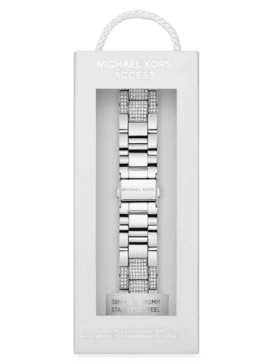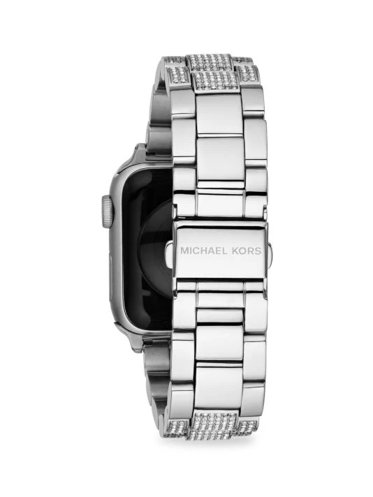 From the Apple Bands collection. This stainless steel bracelet band features silver-tone pavé-detailed center links, and is made specifically for use with the Series 1, 2, 3, 4 and 5 Apple Watch®, fitting both 38mm and 40mm styles.