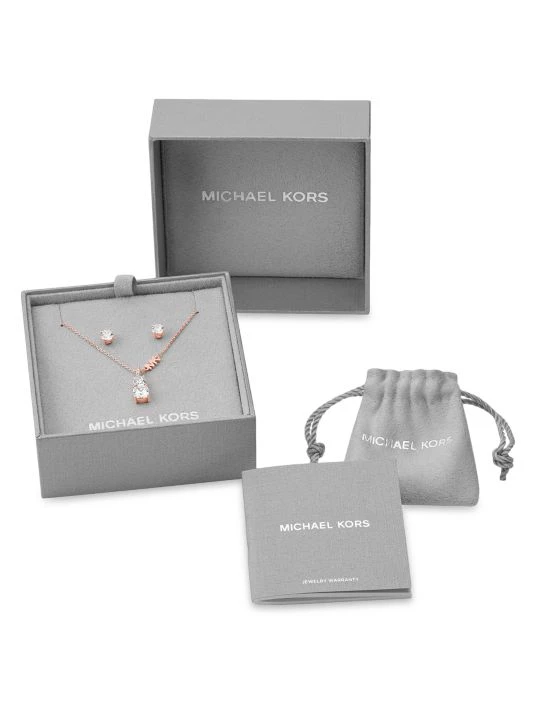 From the Premium Collection. Michael Kors’ 14K-rose-gold-plated jewelry set features a pendant necklace and stud earrings accented with sparkling cubic zirconia stones.
