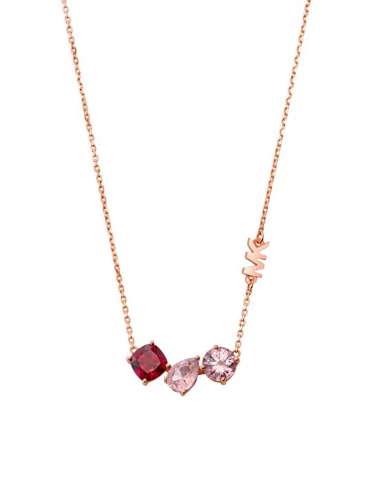 From the Premium Collection. Michael Kors’ elegant 14K-rose-gold-plated necklace features a sparkling cluster pendant with mixed nanogem stones on a delicate chain.