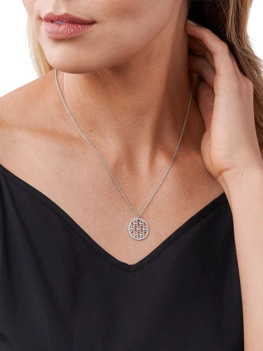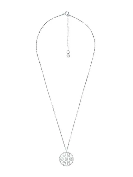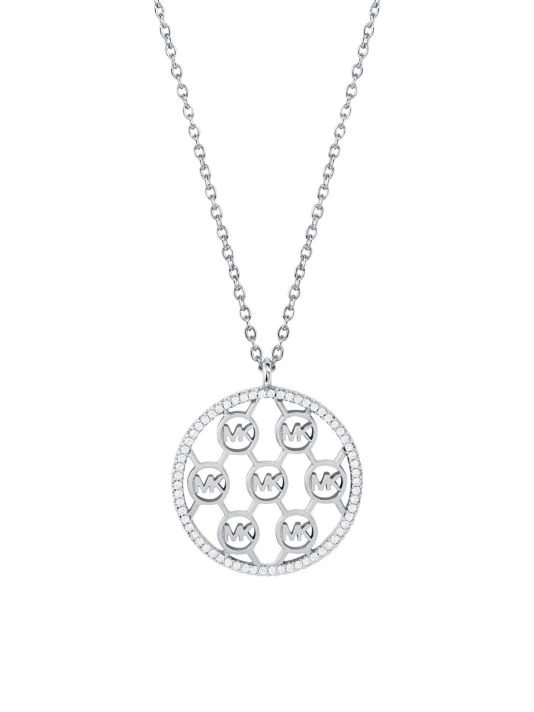 From the Premium Collection. Framed by a ring of cubic zirconia pavé, this necklace features a signature monogram pendant.