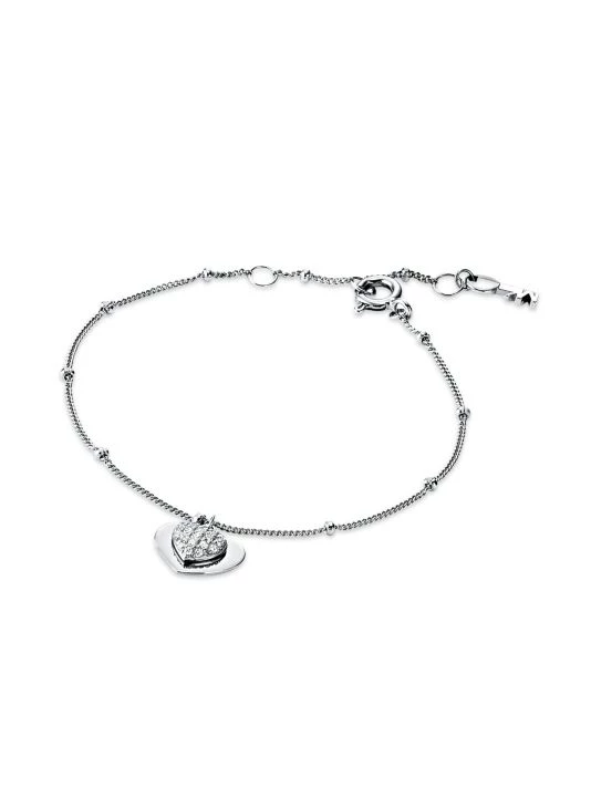 From the Premium Collection. A layered heart charm centers this beaded station bracelet, designed with pavé for glittering shine.