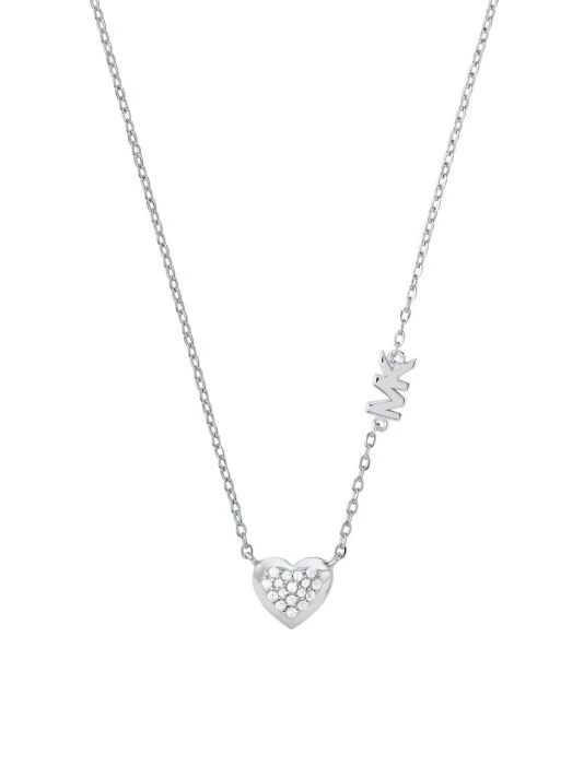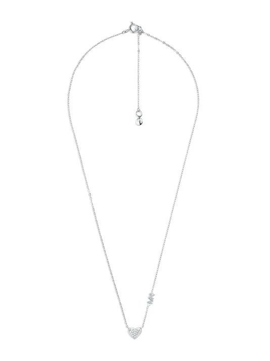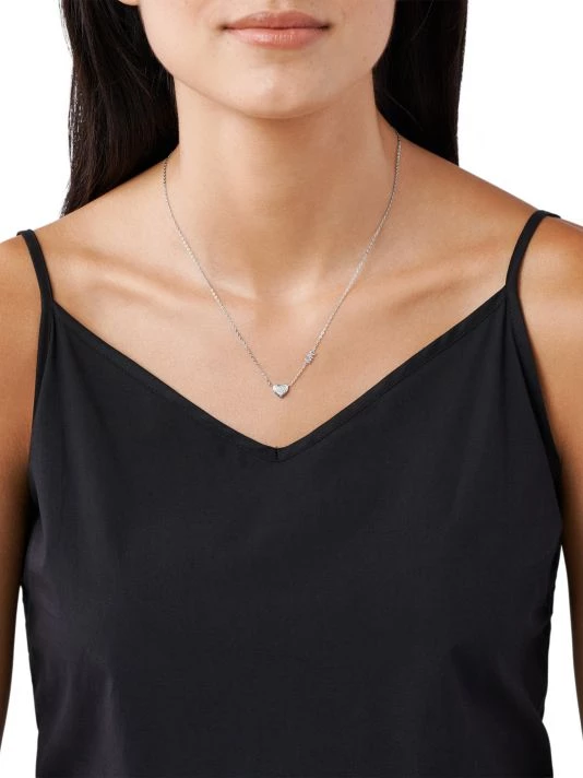 From the Premium Collection. Centered by a glittering pavé heart, this delicate station necklace features a petite logo charm.