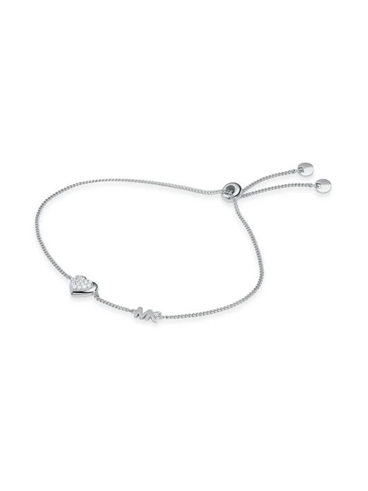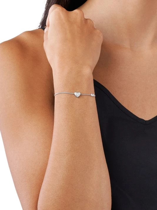 From the Premium Collection. Centered by a glittering pavé heart, this delicate slider bracelet features a petite logo charm.