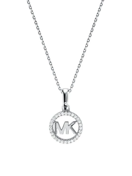 From the Premium Collection. A ring of pavé lends shine to this round logo pendant necklace.