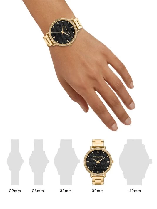 - Goldtone stainless steel case and bracelet