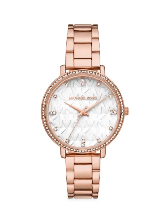 From the Pyper Collection. Featuring a white stamped logo dial with crystal hour markers, this elegant rose goldtone stainless steel watch is accented with pavé crystals at the bezel.