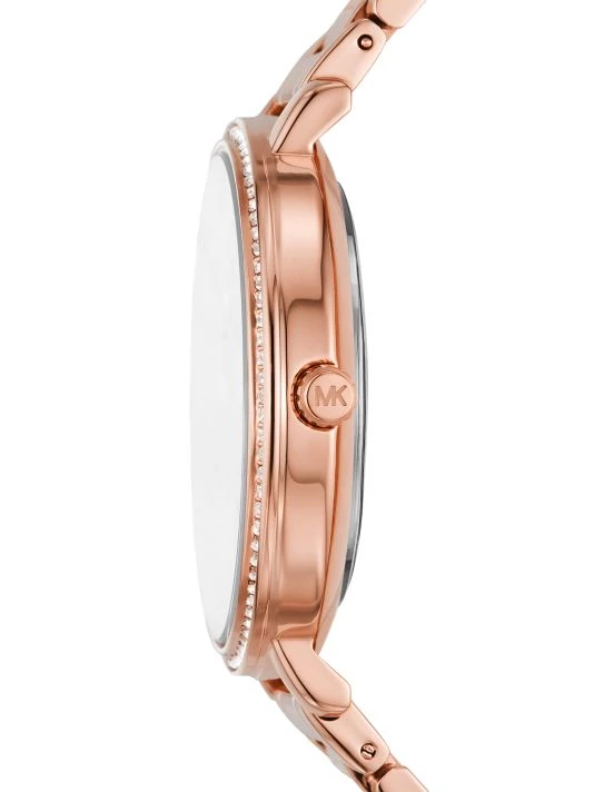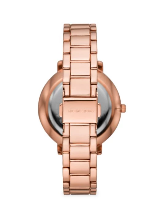 - Rose goldtone stainless steel case and bracelet