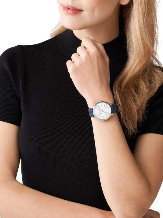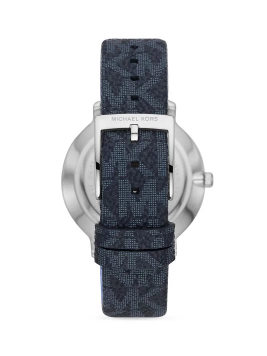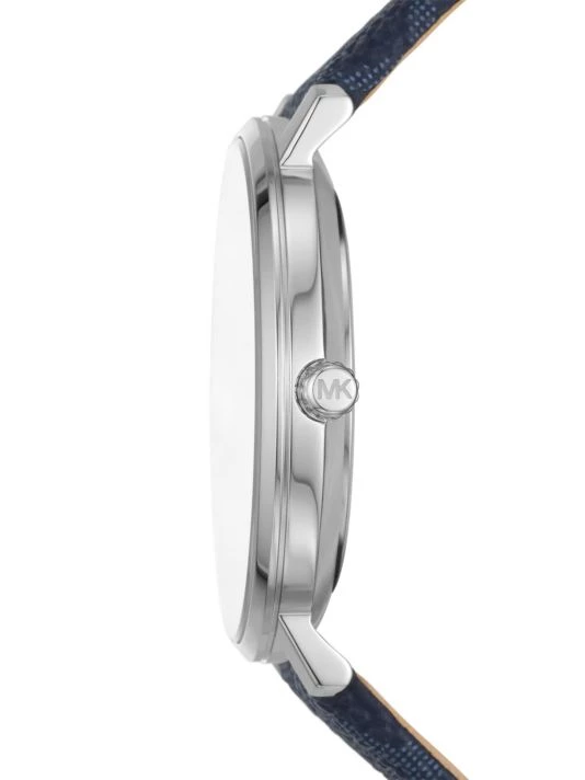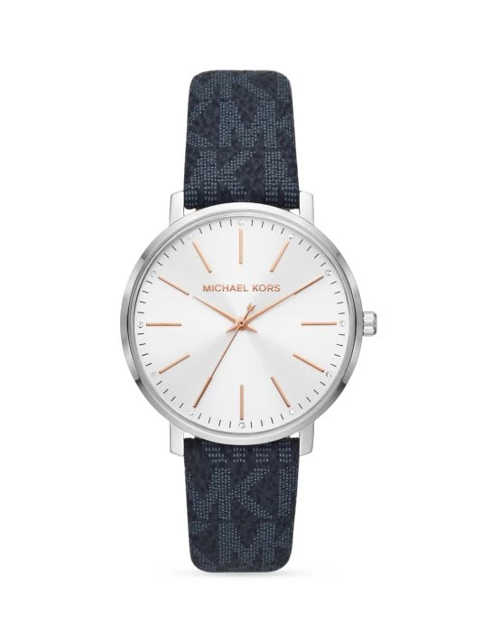 From the Pyper collection. Featuring the label’s signature PVC logo strap, Michael Kors’ classic three-hand watch showcases a round stainless steel case and white dial with stick indexes.