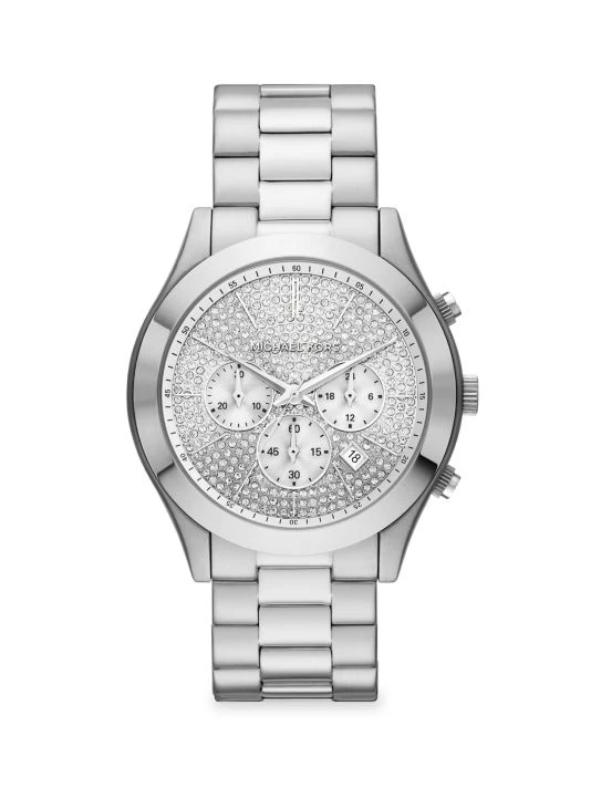 From the Slim Runway Collection. Crystal pavé adds shine to this streamlined stainless steel bracelet watch.