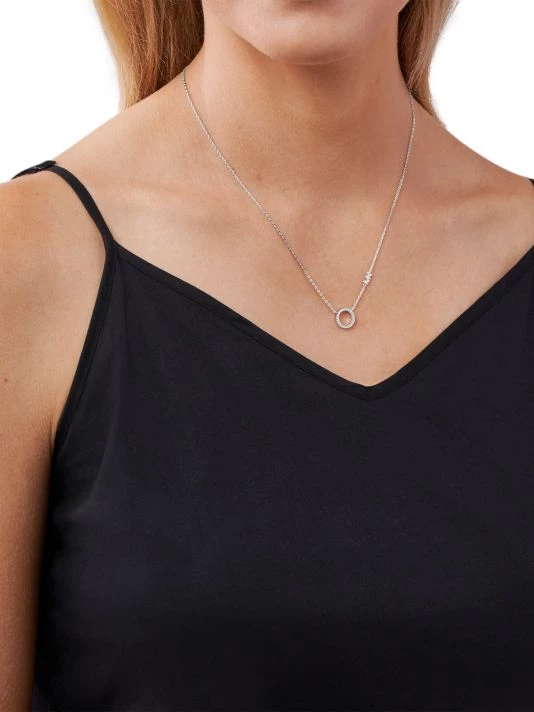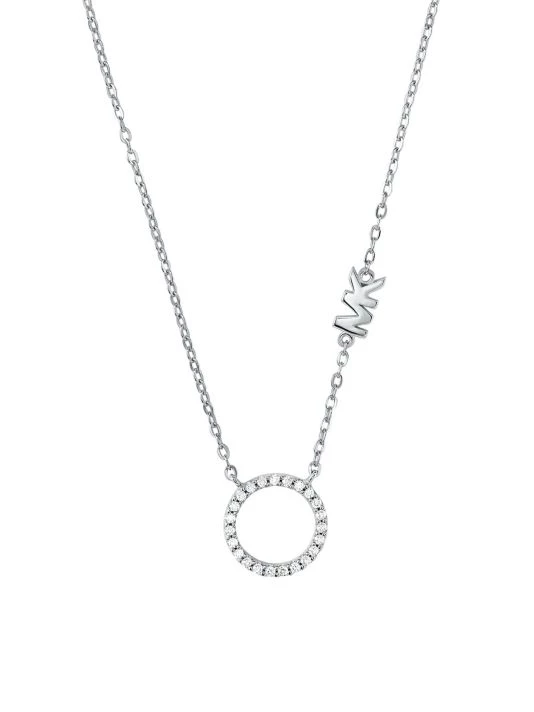 Michael Kors’ sterling silver necklace features a dainty cubic-zirconia-encrusted circle pendant fixed to a fine cable chain. Accented with a polished monogram charm, this accessory captures the designer’s penchant for sleek, modern design.