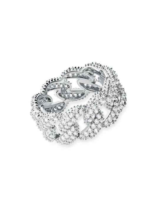 Crafted of sterling silver, Michael Kors’ curb-chain ring shimmers with white cubic zirconia.