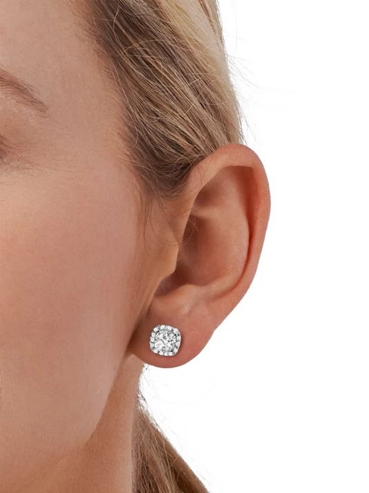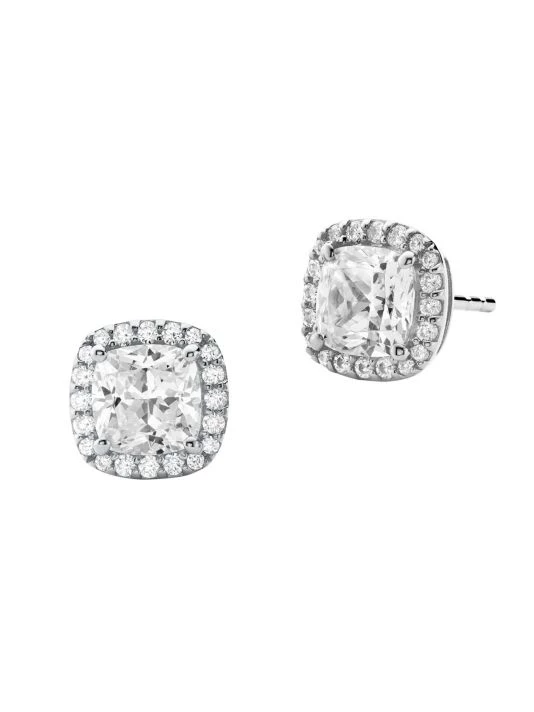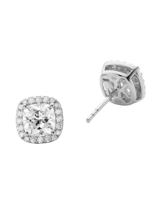 Crafted of sterling silver, Michael Kors’ stud earrings are embellished with sparkling cushion-cut and pavé white cubic zirconia.