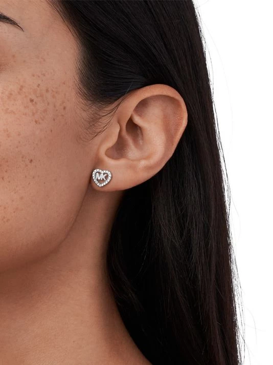 Made of sterling silver, Michael Kors’ heart-shaped monogram stud earrings are bordered by shimmering white cubic zirconia. This versatile pair adds a polished, refined touch to any look.