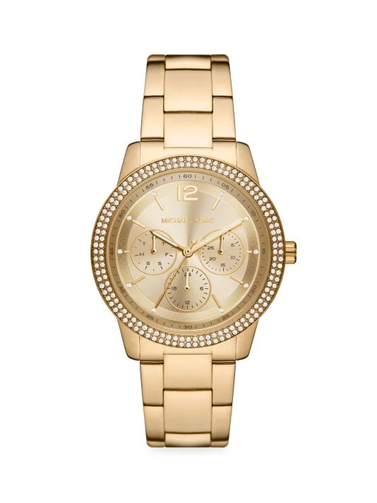 - Goldtone case with pavé topring