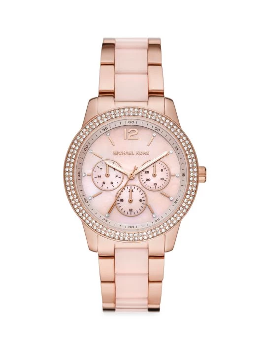 From the Tibby Collection. A ring of crystal pavé adds shine to this monochrome watch.
