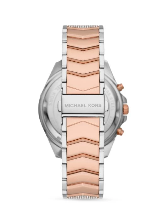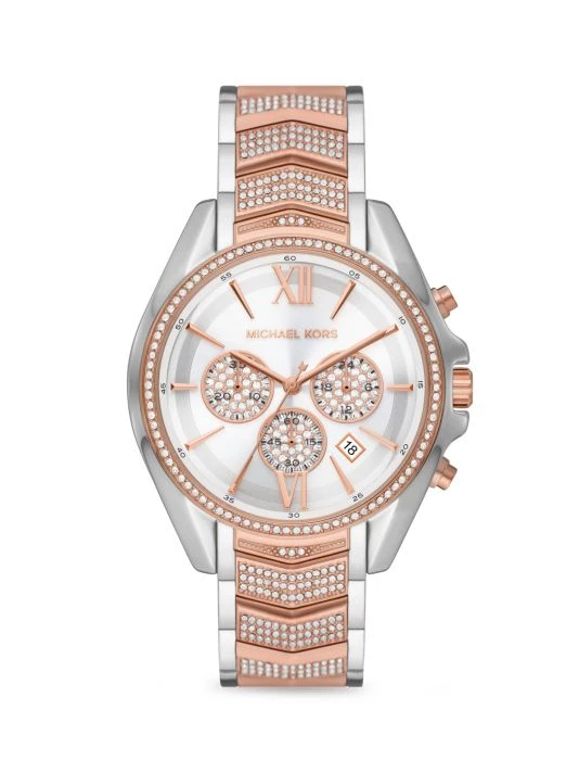 From the Whitney Collection. Pavé adds shine to this two-tone stainless steel watch, designed with a unique chevron-link bracelet.