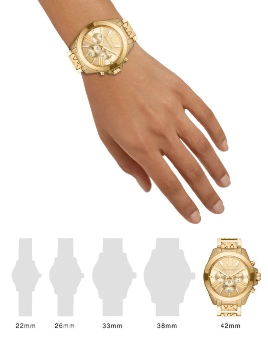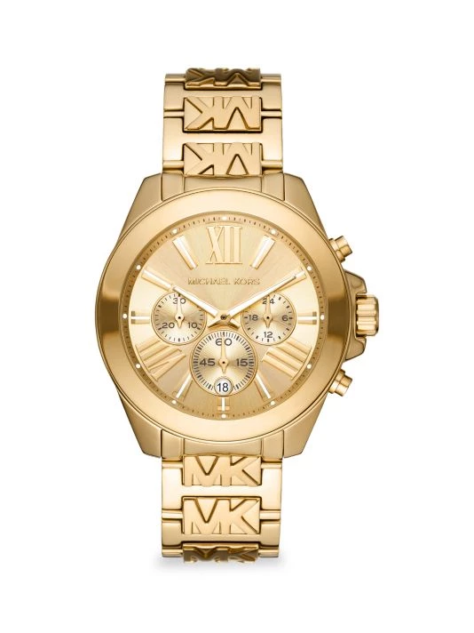 From the Wren Collection. Crafted of goldtone stainless steel, this striking watch boasts logo lettering at the bracelet and a chronograph dial.